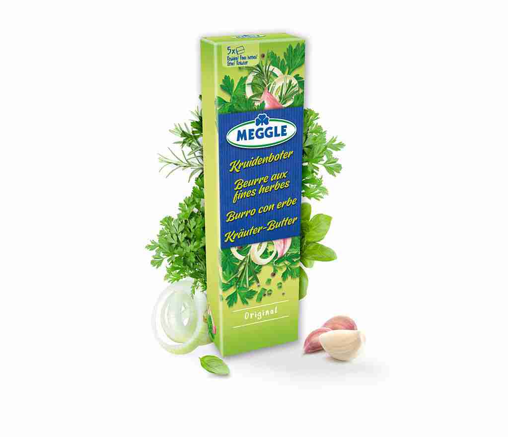 Depuis 1968, le beurre aux fines herbes est l’un des secrets les mieux gardés du maître beurrier MEGGLE. Depuis sa création par Josef Anton Meggle II, la recette a été améliorée avec passion jusqu’à répondre aux exigences élevées de nos développeurs de produits. Avec ses fines herbes fraîches et son goût intense et savoureux, le beurre aux fines herbes est un élément incontournable des barbecues.